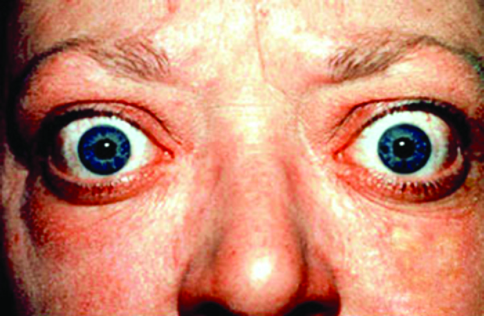 Hyperthyroidism: Hyperthyroidism is the overproduction of the thyroid hormone. Graves’ disease, an autoimmune disease, is the most common cause of hypothyroidism. This condition causes the thyroid gland to become overly large and receive large quantities of the hormone. Many people with Graves’ disease can be identified by the swelling tissue around their eyes.
