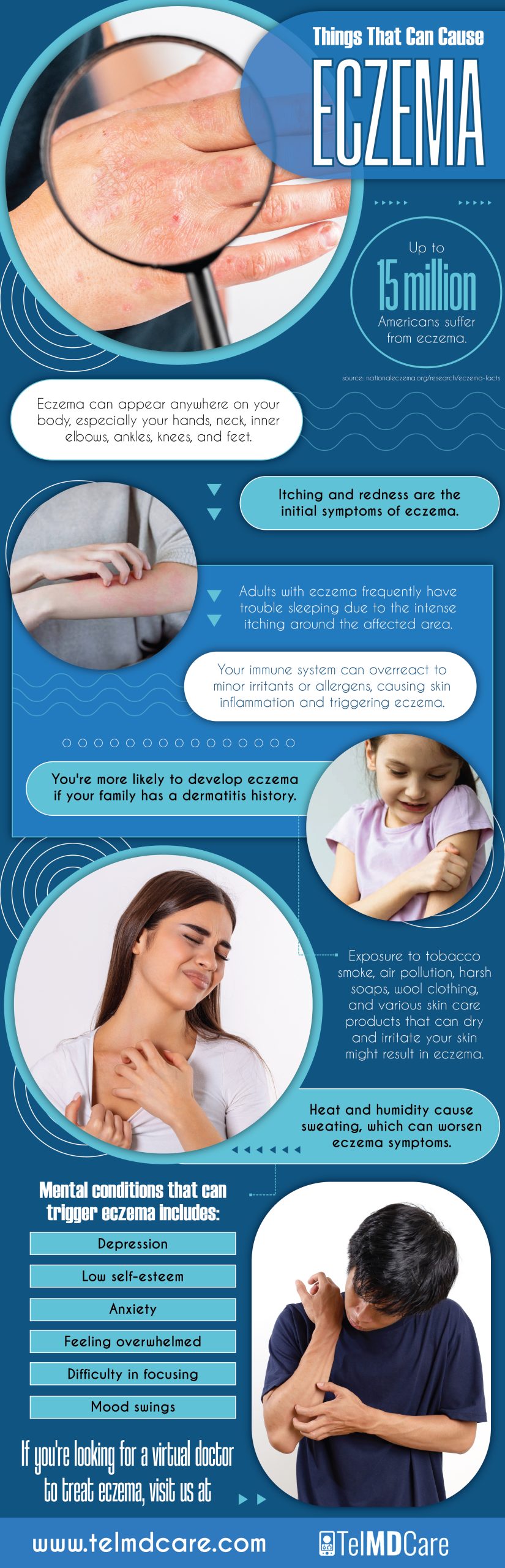 - Mental health:TelMDCare offers mental health consultations to address conditions like anxiety and depression.